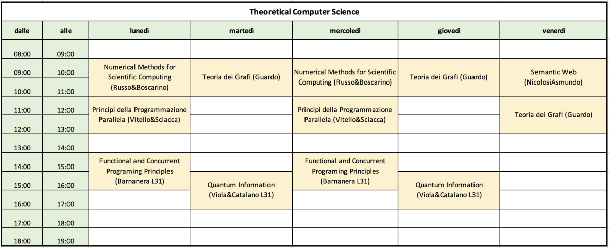 | Architettura degli Elaboratori Quantistici | martedì e giovedì | 09:00-11:00 | Aula 36 |